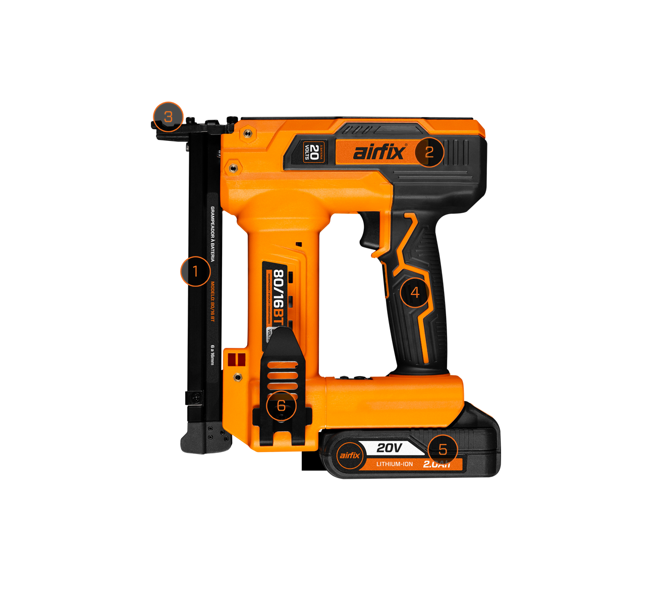 Compatível com grampos tipo 80 de 6 a 16 mm, o grampeador a bateria 80/16BT AIRFIX oferece versatilidade para diferentes aplicações. Seu magazine com capacidade para 150 grampos garante maior autonomia de trabalho e menos interrupções para recarregamento.