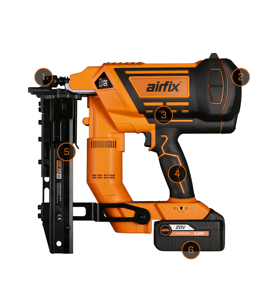 O ABF32 Airfix funciona com uma câmara de ar comprimido interna de 80 PSI, que garante força constante nos disparos e pode ser facilmente recarregada com um compressor comum.