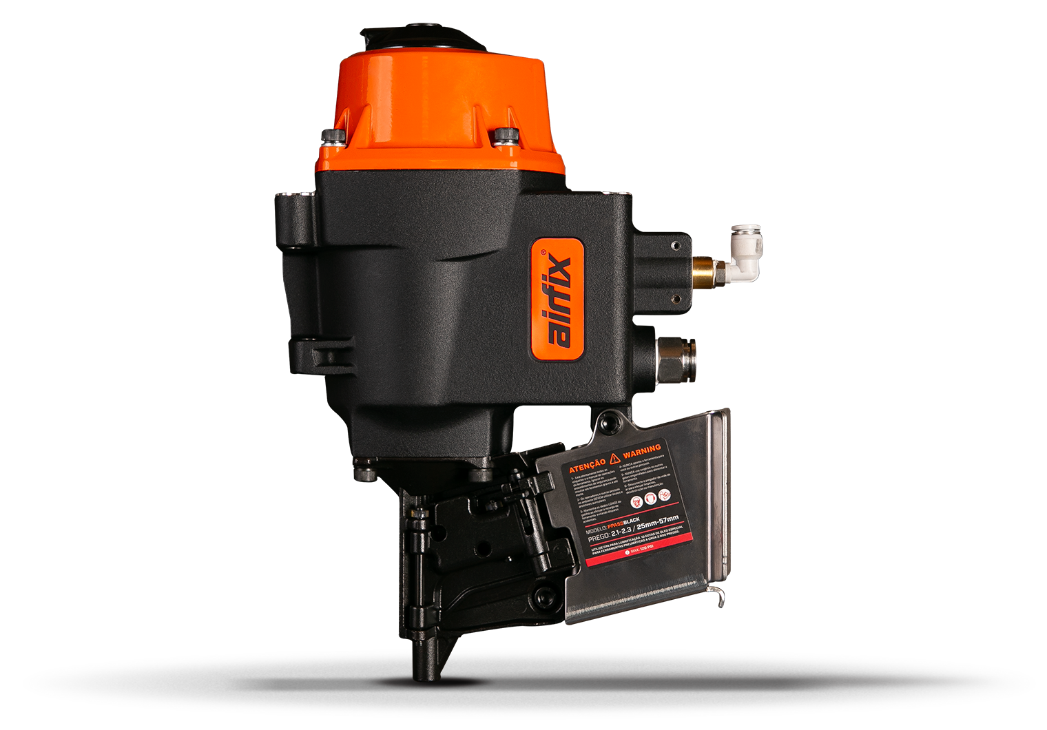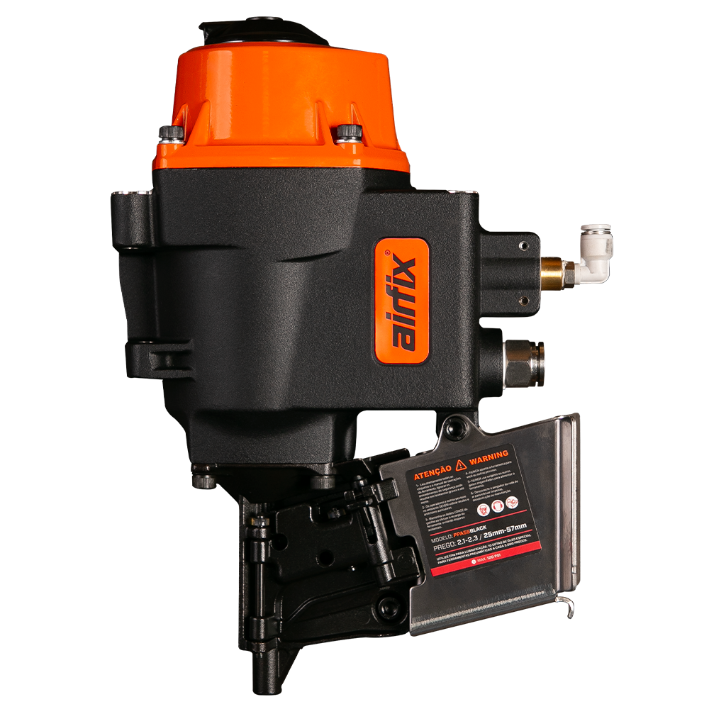 Com um fluxo interno de ar redesenhado, aumentamos a performance em até 25%. O desempenho da linha de Pregadores AIRFIX BLACK é algo surpriendente. Estamos falando de uma velocidade de disparo de 5 golpes por segundo, muito mais do que qualquer operador de qualquer indústria consegue desempenhar. A linha BLACK é a Linha PREMIUM da AIRFIX para Pregadores. Mudamos do Design clássico de nossas máquinas para destacar isso.