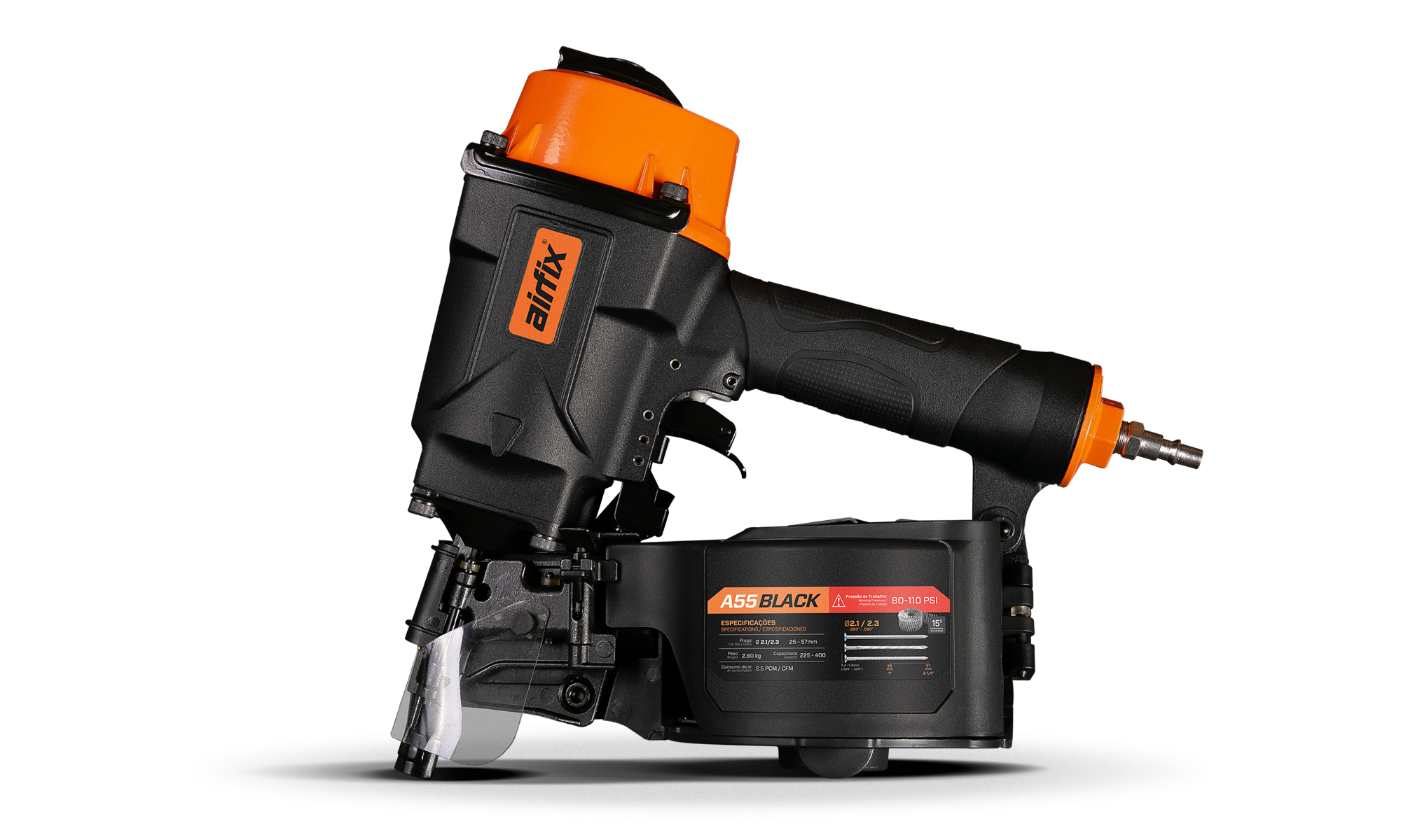 O Pregador Pneumático A55 Black é a ferramenta ideal para quem busca agilidade e eficiência na construção civil, especialmente em aplicações robustas como a montagem de caixarias para concreto e sistemas em wood frame. Projetado para suportar alta demanda, ele garante fixações firmes e precisas, reduzindo o tempo de execução e aumentando a produtividade no canteiro de obras. Seu design ergonômico proporciona maior conforto ao operador, enquanto sua durabilidade assegura excelente desempenho mesmo em condições de uso intensivo.